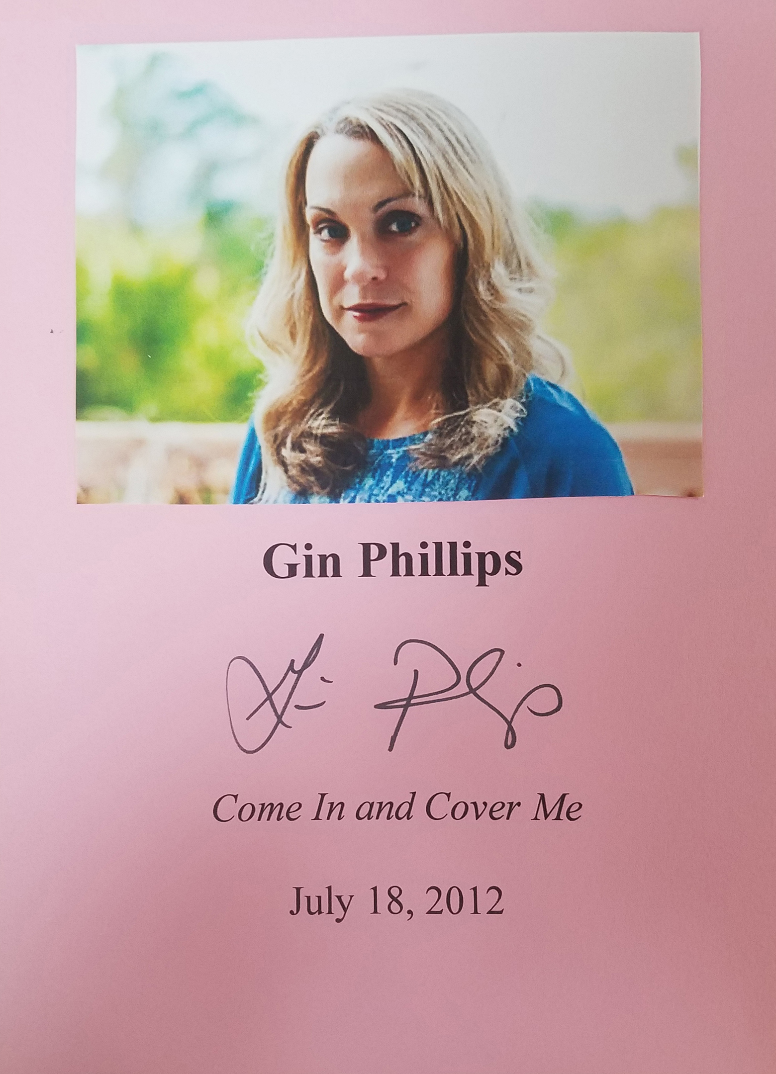 GIN PHILLIPS (pictured below from our Wall of Fame) is a Homegirl whose award-winning novels have been sold in twenty-nine countries. Thank you Gin Phillips for signing our books.