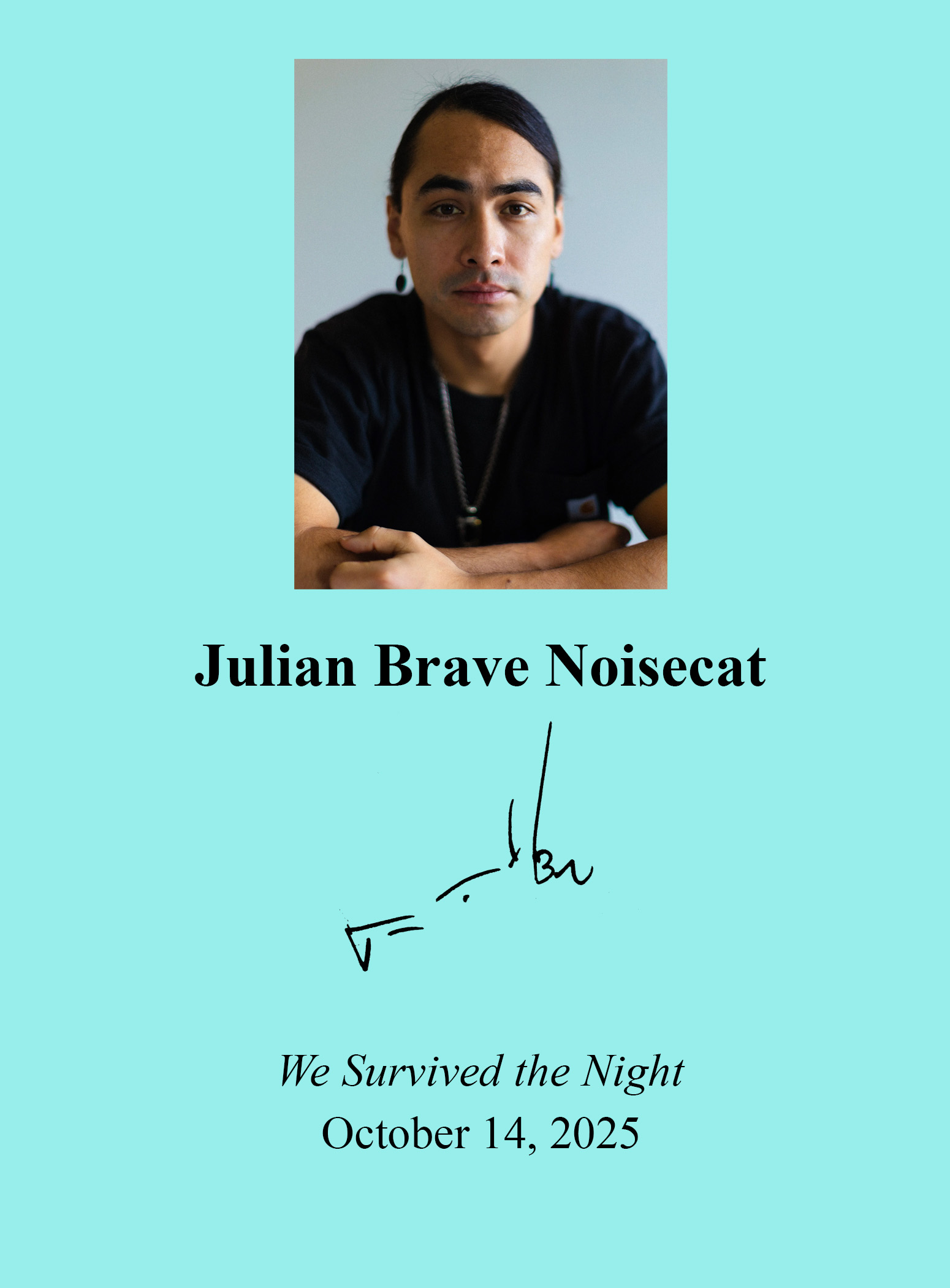 THIS COPY (shown below) was hand signed by Julian Brave Noisecat on a page bound into the book. It is a new, unopened first edition and comes with a certificate authenticating the signature. Published in October, 2025 by Knopf, an imprint of Penguin Random House.